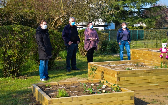 Le jardin partagé fait suite au verger et se situe devant le groupement scolaire.