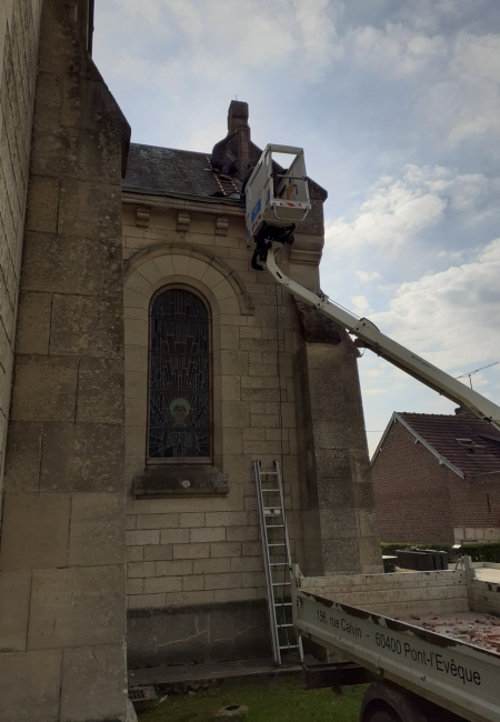 Merci à l’Entreprise CJD basée à Pont L’Evêque qui est intervenue sur la toiture de l’église communale.